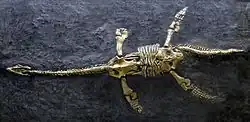 ![]() Espécimen de Thalassiodracon hawkinsi hallado en estratos del Lias Inferior de Street, Somerset, Inglaterra. | ||