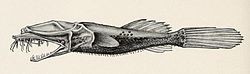 Pez abisal perteneciente a la familia Thaumatichthyidae, que habita en aguas de 1400 m de profundidad en la plataforma continental.