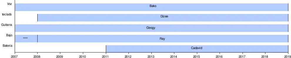 La banda se formó por el vocalista Álvaro Charry y Jorge Luis Bello donde empezaron a crear melodías y canciones; con el tiempo, de manera empírica, logran acoplar nuevos sonidos y tendencias.[2] Durante ese periodo, se unió Juan David Parra como baterista y sale de la banda Héctor Andrés Muñoz Ramírez. Después de haber tocado con 3 bajistas diferentes se integra César Barajas, David Castiblanco como vocalista segunda voz y con su sonido la banda queda completa.[2]