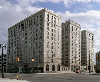 ![]() The Park Shelton desde la esquina de Kirby Street y Woodward Avenue. | ||