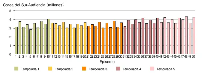 El estreno de la serie registró una audiencia nacional del 17,7 %, lo que supone 2,8 puntos menos que el primer episodio de la serie de fin de semana que la precedió, Three Bold Siblings. El dato confirma la tendencia descendente para este tipo de producto televisivo ofrecido por KBS, que tiene cada vez más dificultades para superar la barrera del 20 %.[29]