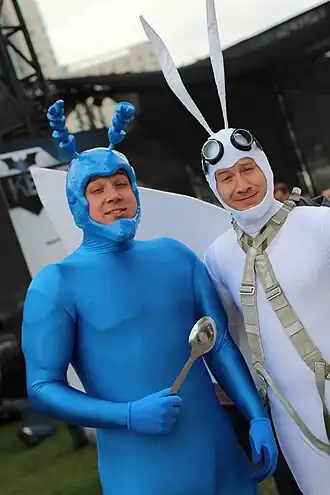 ![]() Cosplayers como The Tick (izquierda) y su compañero Arthur (derecha). | ||