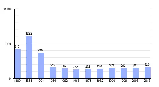 | Gráfica de evolución demográfica de Thel entre 1800 y 2013 |