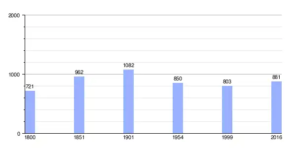 | Gráfica de evolución demográfica de Thenay entre 1800 y 2016 |