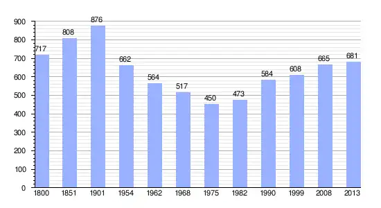 | Gráfica de evolución demográfica de Theuville entre 1800 y 2013 |