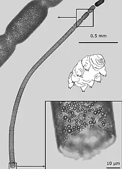 - ↑ a b Volland, Jean-Marie; Gonzalez-Rizzo, Silvina; Gros, Olivier; Tyml, Tomáš; Ivanova, Natalia; Schulz, Frederik; Goudeau, Danielle; Elisabeth, Nathalie H; Nath, Nandita; Udwary, Daniel; Malmstrom, Rex R; Guidi-Rontani, Chantal; Bolte-Kluge, Susanne; Davies, Karen M; Jean, Maïtena R; Mansot, Jean-Louis; Mouncey, Nigel J; Angert, Esther; Woyke, Tanja; Date, Shailesh V (18 de febrero de 2022), A centimeter-long bacterium with DNA compartmentalized in membrane-bound organelles, Cold Spring Harbor Laboratory, S2CID 246975579, doi:10.1101/2022.02.16.480423.