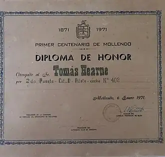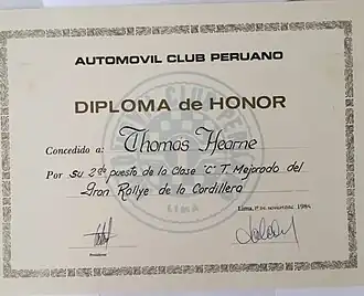 La presentación de esta galería de imágenes que corresponden a diplomas recibidos por haber ocupado podios es gracias a la colección personal de Thomas Eduardo Hearne para esta publicación. Todos son auténticamente genuinos y son parte de su colección privada. En algunas imágenes se pueden notar el deterioro de ellas por el paso de los años