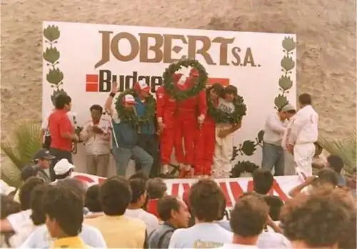 6 Horas Peruanas 1986. Podio de ganadores coequiper Eduardo Hearne.