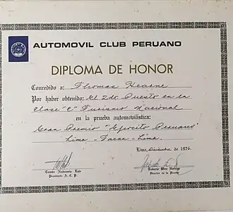 2do puesto Gran Premio "Ejercito Peruano", 1976.