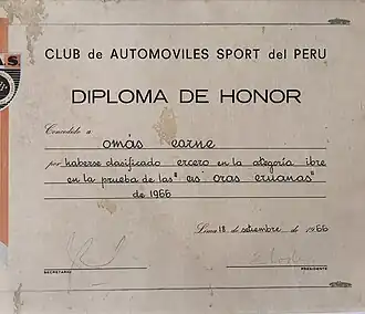 3.er puesto en las "6 Horas Peruanas", 1966.