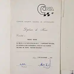 1977 Subcampeonato Nacional C.D.N.A. (Actualmente Federación Peruana de Automovilismo).