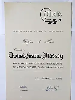 1978 Subcampeonato Nacional C.D.N.A. (Actualmente Federación Peruana de Automovilismo).