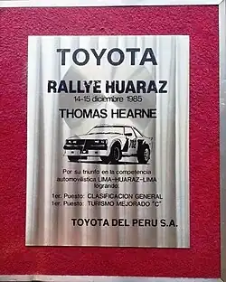 Rally Lima-Huaraz-Pativilca-Lima 1986, ganador Thomas Hearne y Copiloto Carlos Aservi.