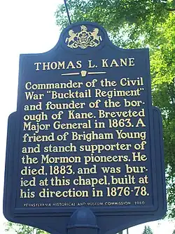 - ↑ «General brigadier Thomas L. Kane» (en inglés). Consultado el 9 de enero de 2022.