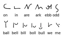 El trabajo de Shelton fue punto de partida para el desarrollo de esta ciencia instrumental cuyo propósito es escribir rápidamente. Su alfabeto está compuesto por 24 signos integrados por líneas rectas, curvas y mixtas. Las vocales están señaladas por el lugar que ocupan las consonantes, lo que obligaba a escribir por sílabas libres.