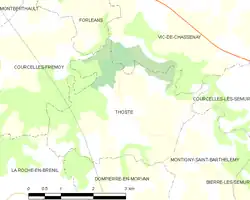 Thoste es una población y comuna francesa, en la región de Borgoña, departamento de Côte-d'Or, en el distrito de Montbard y cantón de Précy-sous-Thil.