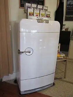 La foto de cubierta del álbum muestra tres objetos en un fondo rosa: Una nevera modelo Hoover, flanqueada a la izquierda por una lámpara nocturna encendida, y a la derecha por una aspiradora con bolsa.