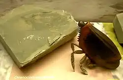 - ↑ a b Thomas A. Hegna, Francisco J. Vega and Katia A. González-Rodríguez (2014). «First Mesozoic Thylacocephalans (Arthropoda, ?Crustacea; Cretaceous) in the Western Hemisphere: new discoveries from the Muhi Quarry Lagerstätte». Journal of Paleontology 88 (3): 606-616. doi:10.1666/13-131.