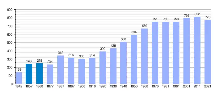 Hacia mediados del siglo XIX, el lugar tenía contabilizada una población de 139 habitantes.[5] Aparece descrito en el decimocuarto volumen del Diccionario geográfico-estadístico-histórico de España y sus posesiones de Ultramar de Pascual Madoz de la siguiente manera: