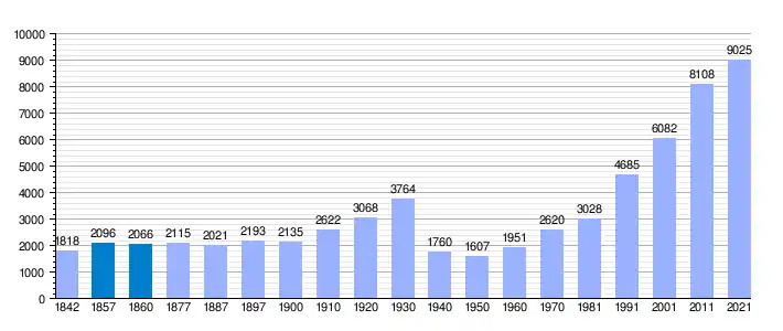 | Gráfica de evolución demográfica de Tiana[1] entre 1842 y 2021 |