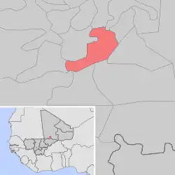 Se encuentra ubicada al sur de la región de Tombuctú, junto a la frontera con la región de Mopti y cerca del río Níger.
