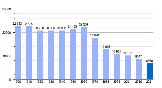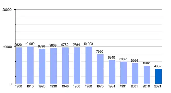 Población de derecho (1900-1991) o población residente (2001, 2010) según los censos de población del INE Población según el padrón municipal de 2021 del INE |