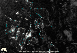 Animación de satélite en la que muestra los cortes de energía durante el paso del Haiyan en Bisayas.