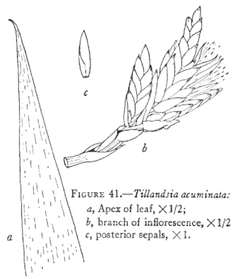 - ↑ «Tillandsia acuminata». The Plant List. Consultado el 21 de abril de 2015.