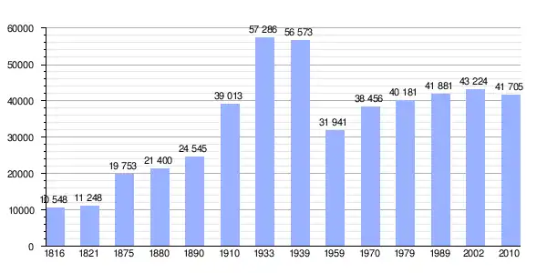 | Gráfica de evolución de Sovetsk entre 1816 y 2010 |