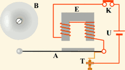 Un timbre eléctrico consiste en un circuito eléctrico compuesto por un generador, un interruptor y un electroimán. La armadura del electroimán está unida a una pieza metálica llamada martillo, que puede darle una campana pequeña.