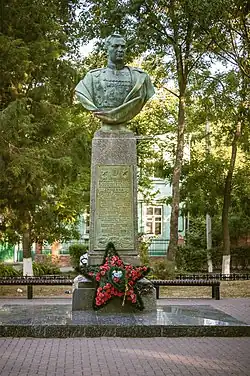 Busto de bronce en honor de Jriukin en el parque Gorki en Yeisk (Rusia)