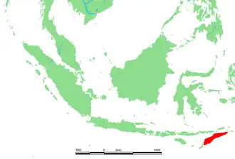 Timor es una isla al sur de Insulindia, dividida entre el estado independiente de Timor Oriental y Timor Occidental, parte de la provincia indonesia de Nusa Tenggara Oriental. El nombre es una variante de timur, palabra que en malayo significa «este», llamada así por estar localizada en el confín oriental de una cadena de islas.