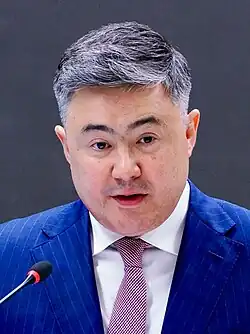 - ↑ Yergaliyeva, Aidana (27 de febrero de 2019). «New government members take oaths of office». The Astana Times (en inglés). Consultado el 21 de octubre de 2020.