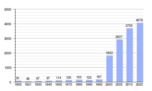 En 2020 registró una población de 4076 personas, lo que corresponde al 4.50 % de la población municipal;[1][7] de los cuales 1940 son hombres y 2136 son mujeres.[1][7]