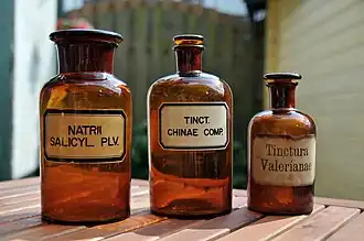 Las tinturas medicinales son extractos líquidos de los principios activos de partes de las plantas medicinales u otras sustancias como el propóleo o el yodo.[1] Se utilizan como fármacos. La extracción se basa en el proceso de maceración.[2] Por lo general, como vehículos excipientes del extracto se utiliza alcohol o agua, o una combinación de ambos, llamándose en este caso extracto hidroalcohólico..[3]