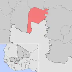 Se encuentra ubicada al sur del país, junto a la frontera con Burkina Faso y Costa de Marfil y al sureste de la capital nacional, Bamako.