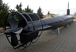 ![]() El HA-8 de la Biblioteca y Museo de la Fuerza Submarina en Groton, Connecticut. | ||