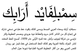 - ↑ a b «Brief history of the traditional Arabic type». Jawaher (en inglés). 25 de octubre de 2014. Consultado el 1 de diciembre de 2022.
