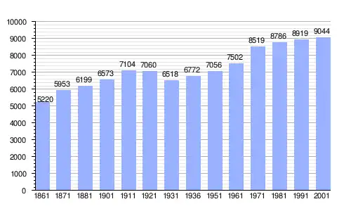 | Gráfica de evolución demográfica de Tirano entre 1861 y 2001 |