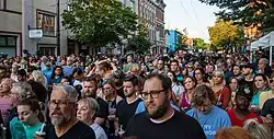 ![]() Mapa de los eventos del tiroteo dentro del Distrito Histórico de Oregon | ||