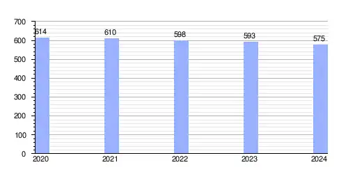 Hasta 2024 la población era de 575 habitantes,[2] con una densidad de población de 25,91 hab/km².[2]