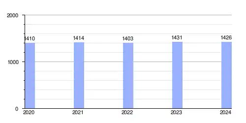 Hasta 2024 la población era de 1426 habitantes,[2] con una densidad de población de 105,70 hab/km².[2]