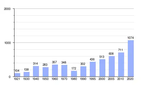 | Gráfica de evolución demográfica de Titaltetic entre 1921 y 2020 |