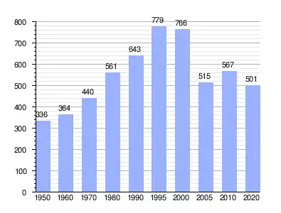 En 2020 registró una población de 501 personas, lo que corresponde al 2.43 % de la población municipal.[13] De los cuales 238 son hombres y 263 son mujeres.[13] Tiene 153 viviendas particulares habitadas.[13]