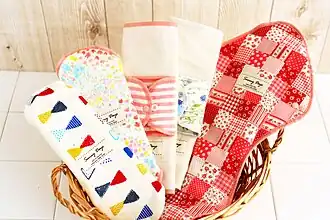 Las toallas de tela o compresas de tela, también llamadas toallas femeninas de tela, toallas higiénicas de tela y toallas ecológicas de tela, son un tipo de toalla sanitaria hecha en tela para absorber la menstruación.[1][2] Se ajustan en la ropa interior y se utilizan por un plazo de entre cuatro y cinco horas. Entre usos, cada una debe lavarse y secarse adecuadamente antes de reutilizar.[3] Junto a copas y la ropa interior absorbente integran el repertorio de insumos reutilizables de gestión menstrual.[4] Pueden confeccionarse en el hogar, o adquirirse directamente a artesanas y pequeños comercios.[5] Para fabricarlas se utilizan distintos textiles, normalmente un núcleo de tela de algodón cubierto de una tela sintética para repeler la humedad. Existen a su vez versiones fabricadas únicamente con algodón.[6][5][7] La vida útil de cada una varía según su confección y cuidados, y puede superar los tres años de uso.[8]