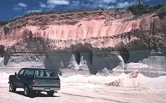 - Esta obra contiene una traducción derivada de «Mesa Falls Tuff» de Wikipedia en inglés, publicada por sus editores bajo la Licencia de documentación libre de GNU y la Licencia Creative Commons Atribución-CompartirIgual 4.0 Internacional.