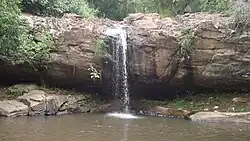 El arroyo Karumbey, que divide los municipios de Atyrá y Tobatí (Paraguay), ofrece este hermoso "chorro" que cae en una verdadera piscina natural rodeada de playa.