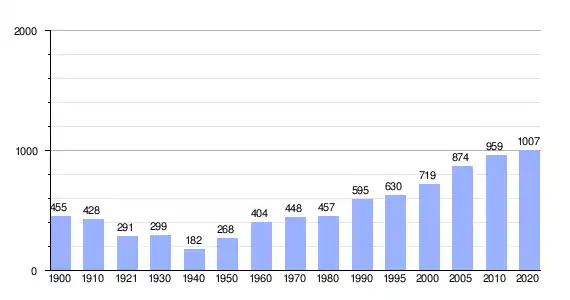 En 2020 registró una población de 1007 personas, lo que corresponde al 2.67 % de la población municipal.[7] De los cuales 508 son hombres y 499 son mujeres.[7]