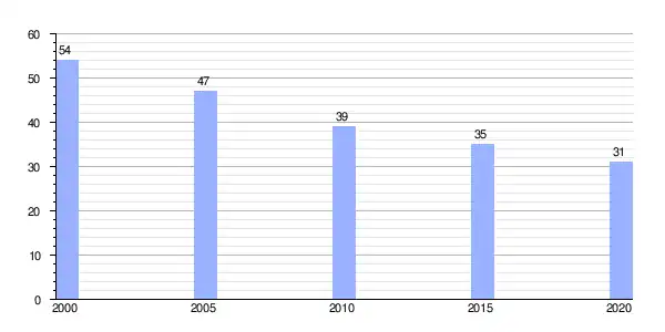| Gráfica de evolución demográfica de Toldaos (aldea) entre 2000 y 2020 |