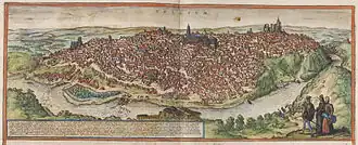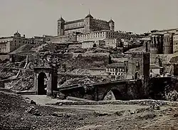 La ciudad fue un importante centro carpetano hasta la conquista romana en 193 a. C. Tras las invasiones germánicas, Toledo se convertiría en capital del Reino visigodo y, posteriormente, en su principal sede eclesiástica. En el año 711, Toledo fue conquistada por los musulmanes, cuyo dominio finalizó con la toma de la ciudad en 1085 por Alfonso VI. Es conocida como «la ciudad imperial» por haber sido la sede principal de la corte de Carlos I[6] y también como «la ciudad de las tres culturas»,[7] por haber estado poblada durante siglos por cristianos, judíos y musulmanes. En el siglo XVI tuvieron lugar la guerra de las Comunidades de Castilla y el traslado en 1561 de la corte a Madrid, tras el cual la ciudad entró en decadencia, acentuada por la crisis económica del momento. Ya en época contemporánea, se recuerda el asedio y defensa del alcázar durante la guerra civil. En 1983, Toledo pasó a ser sede de las Cortes regionales y de la Junta de Comunidades de Castilla-La Mancha[a] y en 1986 su casco histórico fue declarado Patrimonio de la Humanidad.